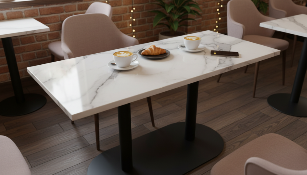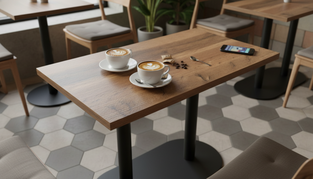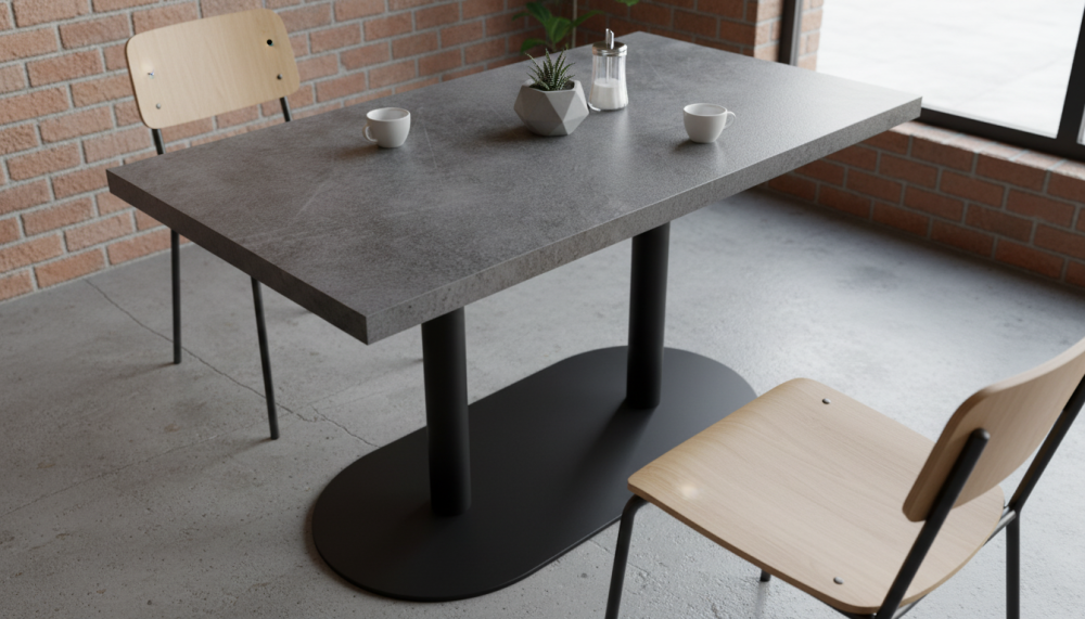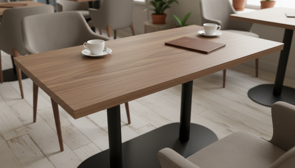 Квадратные, круглые, прямоугольные столешницы HPL. Это ламинат высокого давления. Покрытие МДФ изготавливаеся методом сухого прессования мелкой древесной стружки.